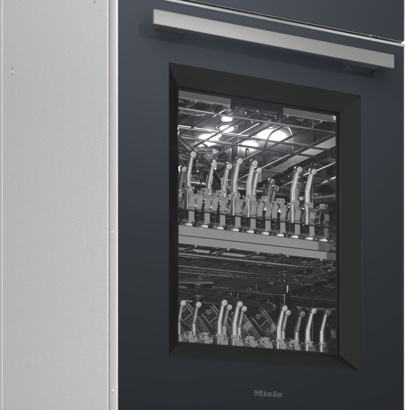 Glasdörren tillsammans med belysningen gör det möjligt att visuellt kontrollera den pågående rengöringen.