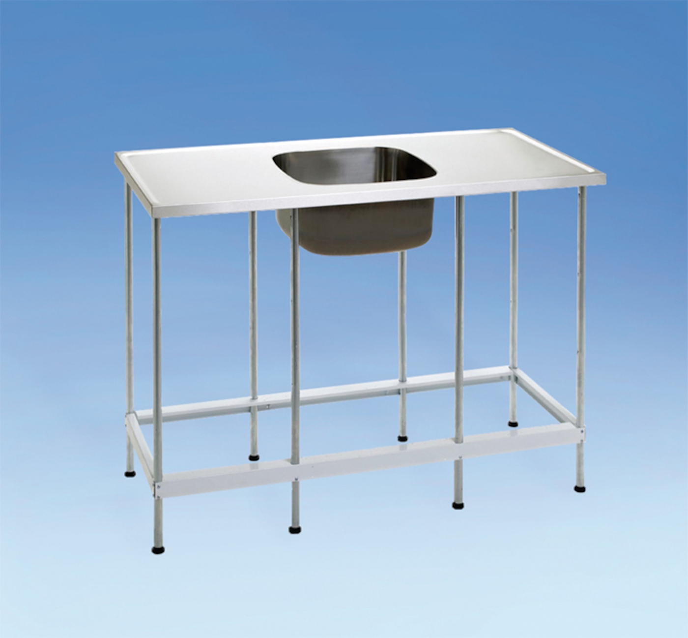 Tvättbänk med rostfria avställningsytor och spillkant